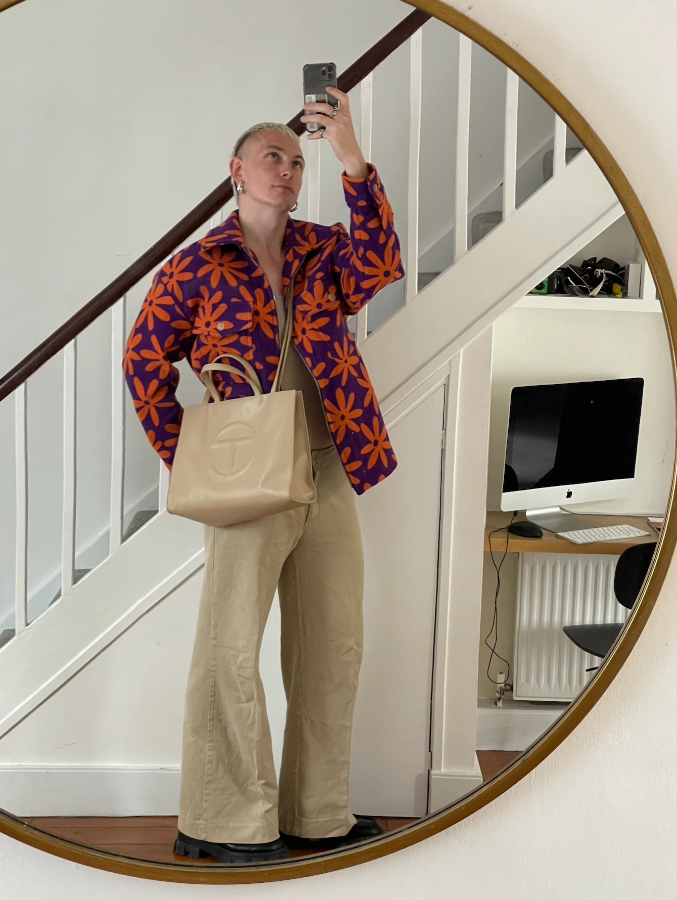This is what happens when Fred from Scooby Doo and Harry Styles have a baby. I’m obsessed with this Jacquemus zip-up and paired it with these Samsøe Samsøe flares (which I was too lazy to iron). As I get older, I’m trying to invest in higher-quality clothes which will last longer. I was going to be bopping around town today so I took my Telfar bag with me. I wanted one of these bags for so long and finally got one last year and I’m weak for it. Finished the look with my Prada loafers because I was feeling boujee. I don’t have that many shoes which is something I need to sort out as I hate when you’ve a fire outfit and the shoes are a letdown… that’s very much a first-world problem so won’t stress too much about it but if you see any stunning size 11s, send them my way.