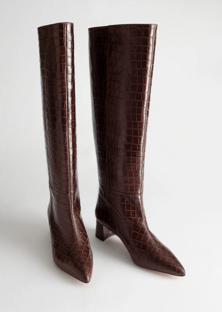 Knee-high boots have become synonymous with winter fashion and like the classic ankle boot, they are a wardrobe must-have. The croc-leather of this pair gives the boots a beautiful point of difference, while the low heel means you won’t be reaching for the Compeed blister pads anytime soon.