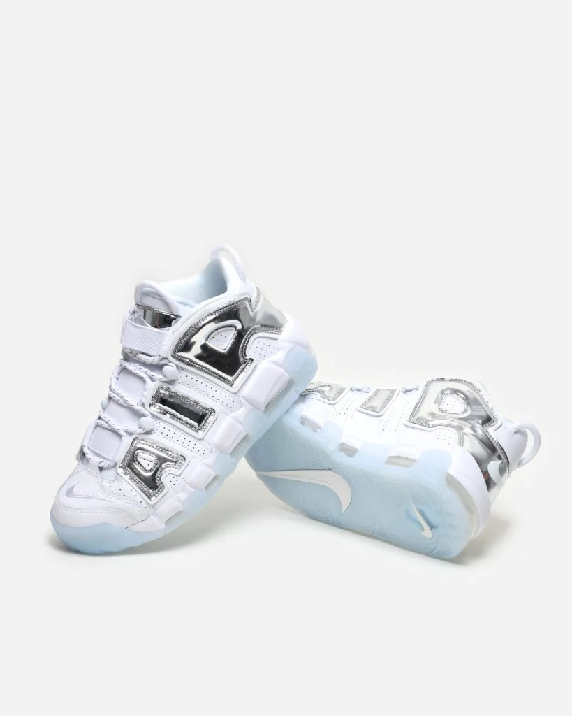 Nike SportswearAir More Uptempo in chrome/white, €190 at Nakedcph.com
