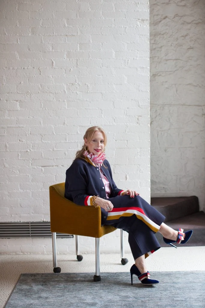 I LOVE TO TAKE RISKS WITH CLOTHES by putting interesting outfits together and clashing prints and colours. I don’t like overbranded clothes; I never have. Day-to-day, I rely on jeans and colourful cashmere knits with a bright coat. For meetings, I love tailored trousers and a fun shirt or knit.