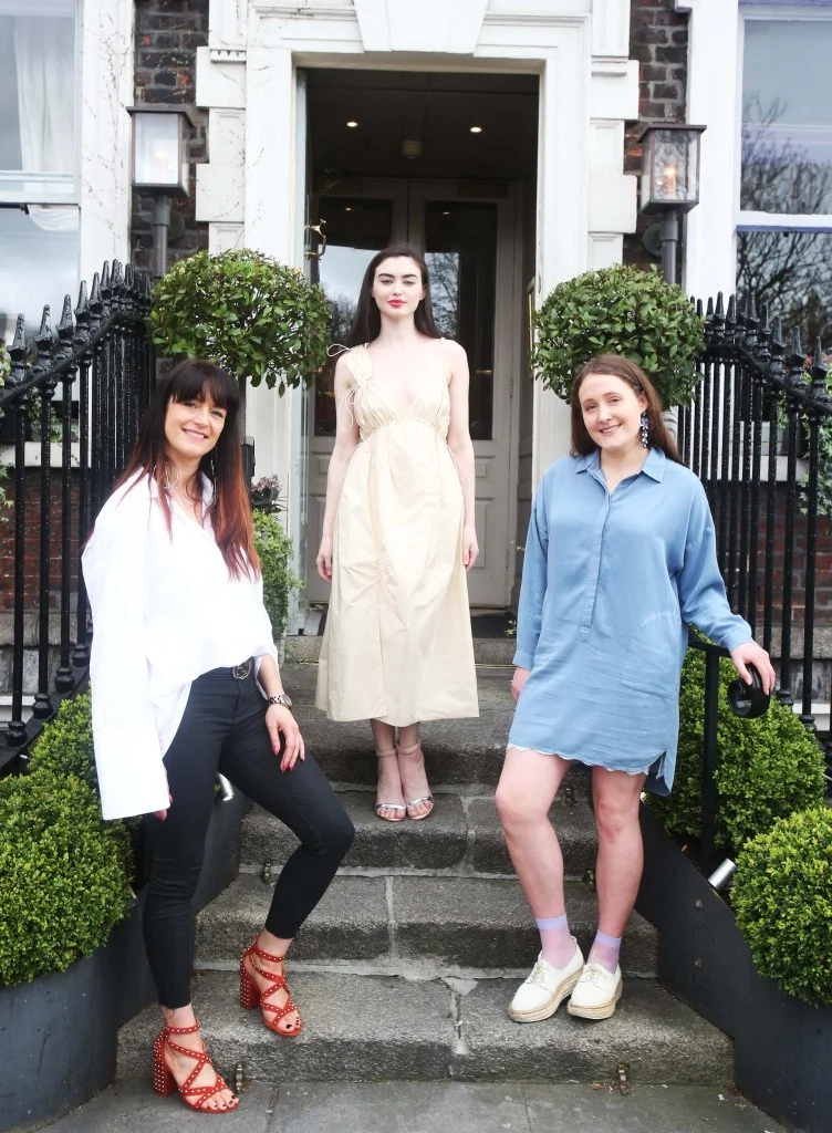 From left to right: River Island Design Contoller Lucy Moller; the winning dress; Bursary winner Caoimhe Hill