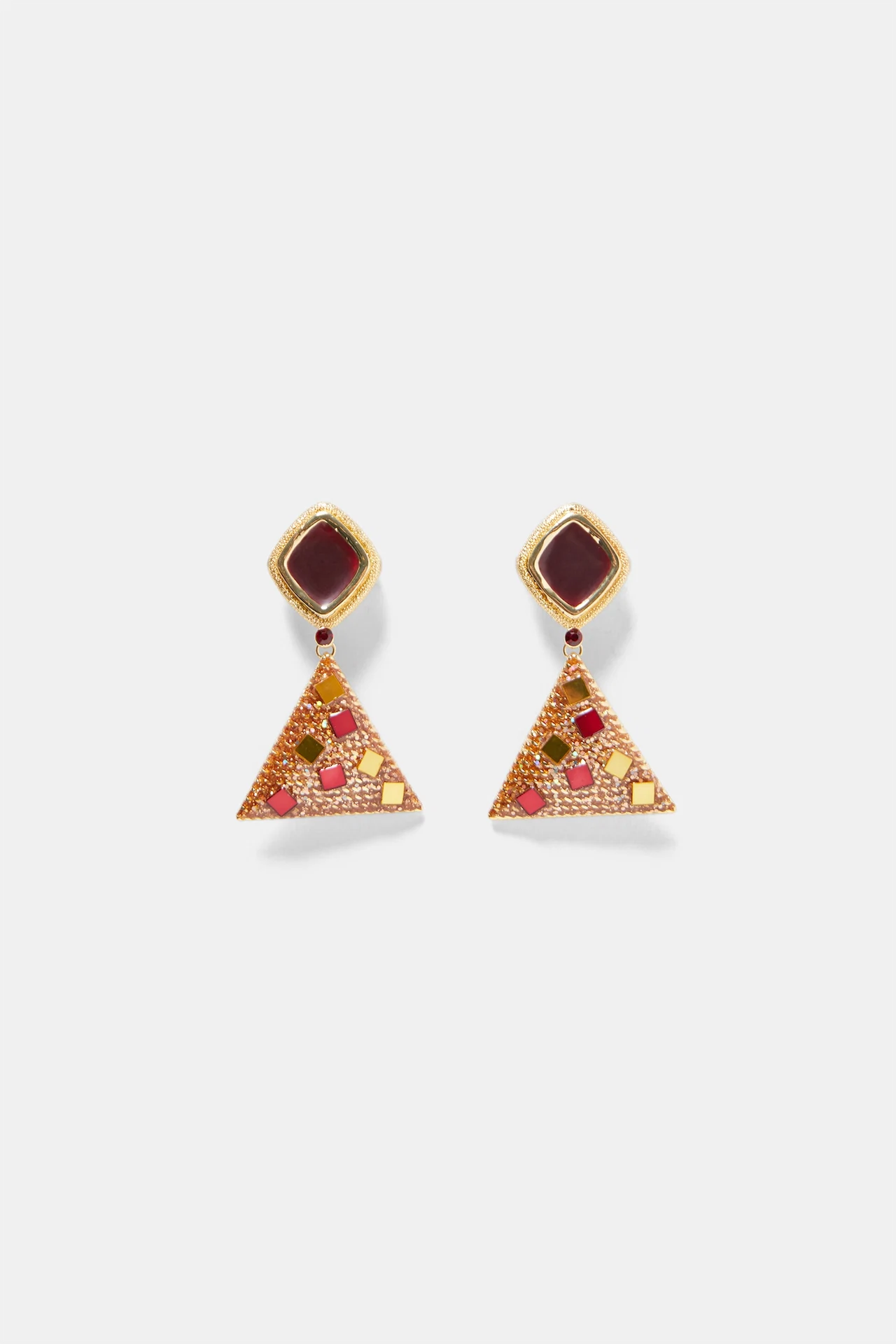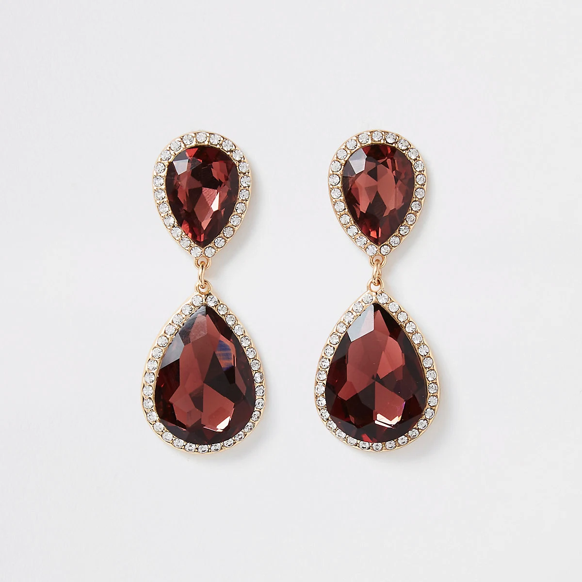Gold tone burgundy jewel drop earrings, €17 at River Island