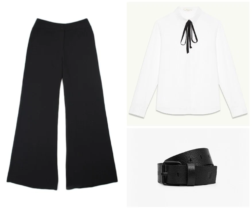 Black magic trousers, Maria Grachvogel, €685 at Havana.?Cotton poplin shirt, €125 at Maje.?Daya dash leather belt, €50 at French Connection.