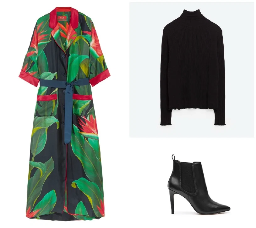 Silk-twill maxi dress, F.R.S For Restless Sleepers, €1,140 at Net-A-Porter. Ribbed high collar sweater, €19.95 at Zara.?Point-toe ankle boots, €280 at Reiss.