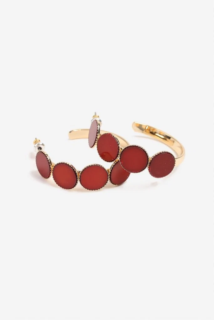 Gold hoop earrings with red circle detail, €13 at Topshop