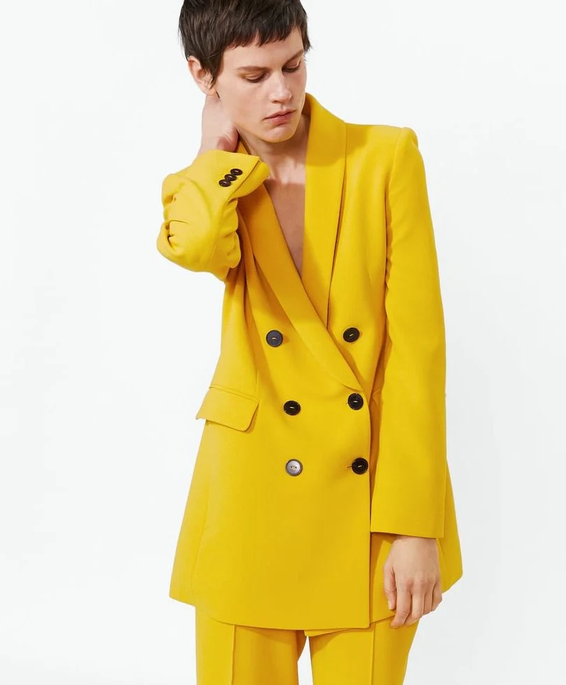 What screams spring more than a punchy shade of yellow? A colorful blazer is a great way to inject some spring into your wardrobe, even if you are still wearing a turtleneck underneath.