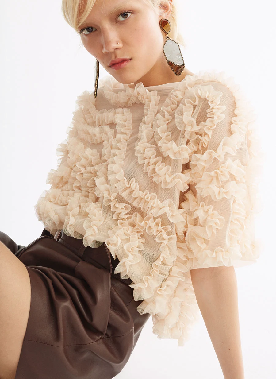 Üterque, Zara’s older sister, has some seriously stylish and fashion-forward pieces already in its arsenal, like white leather mules and two-tone strapless dresses. I’m genuinely obsessed with this pale-pink ruffled top paired with these Nutella-coloured shorts. So chic.