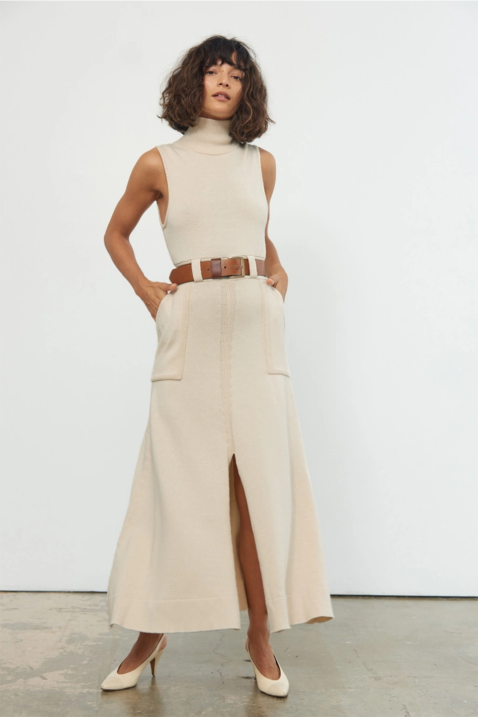 How gorgeous is this organic cotton dress? The turtleneck sweater dress is perfect for both work and after-hour drinks. Pair yours with woven mules and a brown leather bag for an ultra-feminine look.