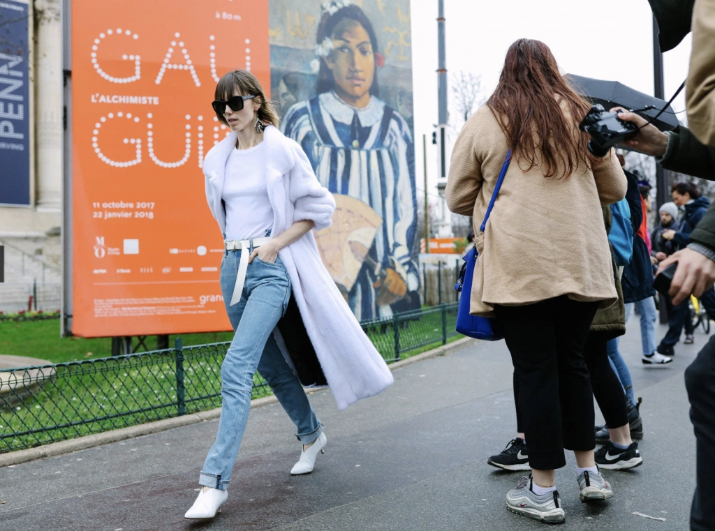 What is it that makes French style so desirable? Perhaps it’s the simplicity, charm and elegance. Okay, not all French girls were berets, but hats as a whole are symbolic of Parisian chic. And how striking does stylist and creative consultant Brie Welch look wearing a subtle pop of pink? Welch achieved what many fail to do, which is dress weather-appropriately (it rained a lot in Paris this week). We imagine she’s wearing a suave pair of loafers and so have styled our look with leather loafers from Zara, below, along with a modern slogan-print cross-body bag. Makeup remains minimal with a tiny splash of pink lipgloss to enhance the pink beret.