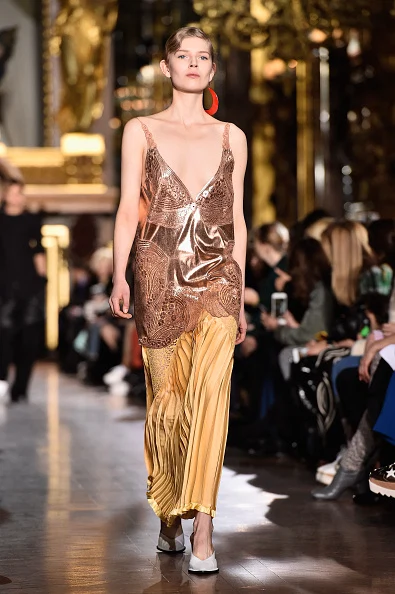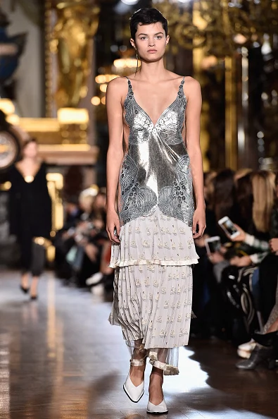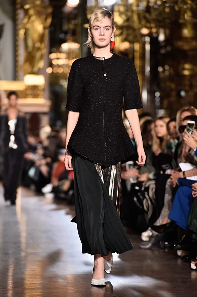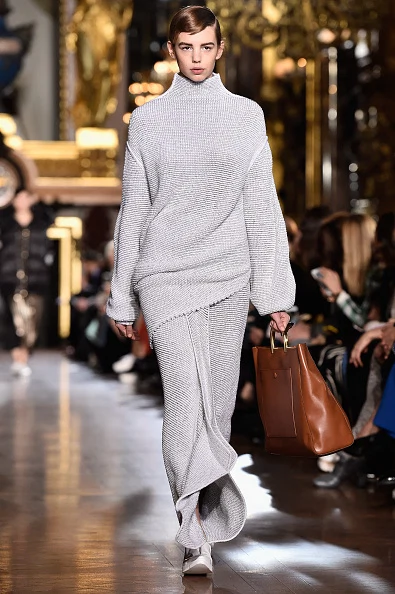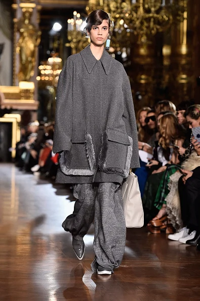 In a range of textures and textiles from denim, velvet, silk and wools, to metallics and pleats, Stella McCartney’s Autumn/Winter 2016 collection of tailored suits, oversized silhouettes, prints, knitwear and that puffa coat is here to take you ?from day-to-night, in a palette of charcoal grey, burnt orange, black and pink.