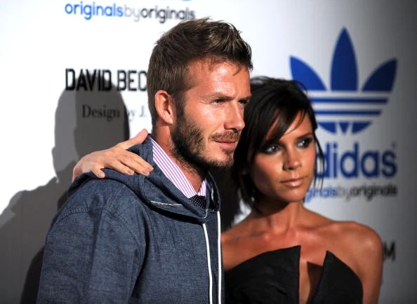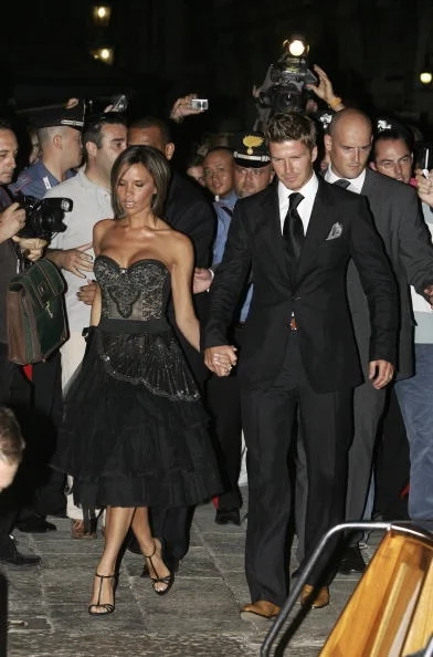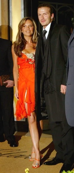 LONDON - APRIL 12: Real Madrid soccer player David Beckham and his wife, Victoria Beckham, leave Claridges Hotel April 12, 2004 in London, England. (Photo by Bruno Vincent/Getty Images)