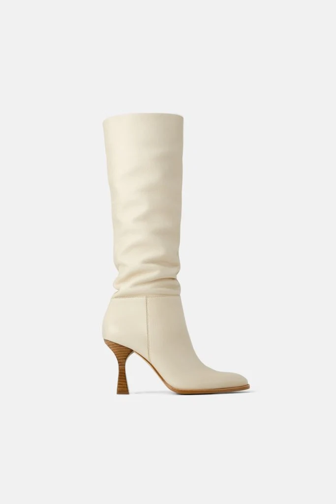 Leather boots with wood-effect heel, €119 at Zara