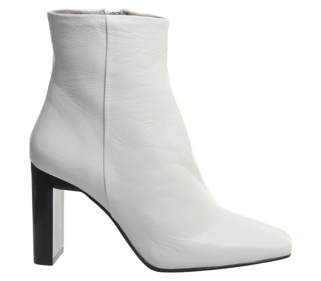 All Night block heel white leather boots, €102 at office.co.uk