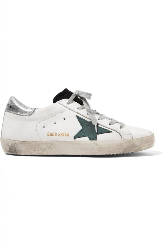 Super star’distressed suede panelled leather sneakers, Golden Goose Deluxe Brand, €315 at net-a-porter