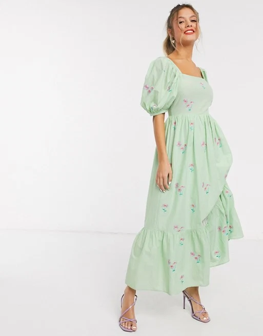 ASOS Design smock midi dress in green floral, €48.39 at ASOS