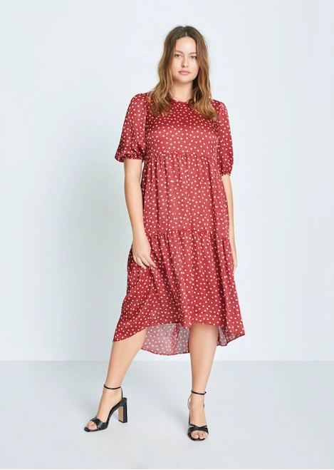 Polka-dot ruffled dress, €59.99 Violetta at Mango