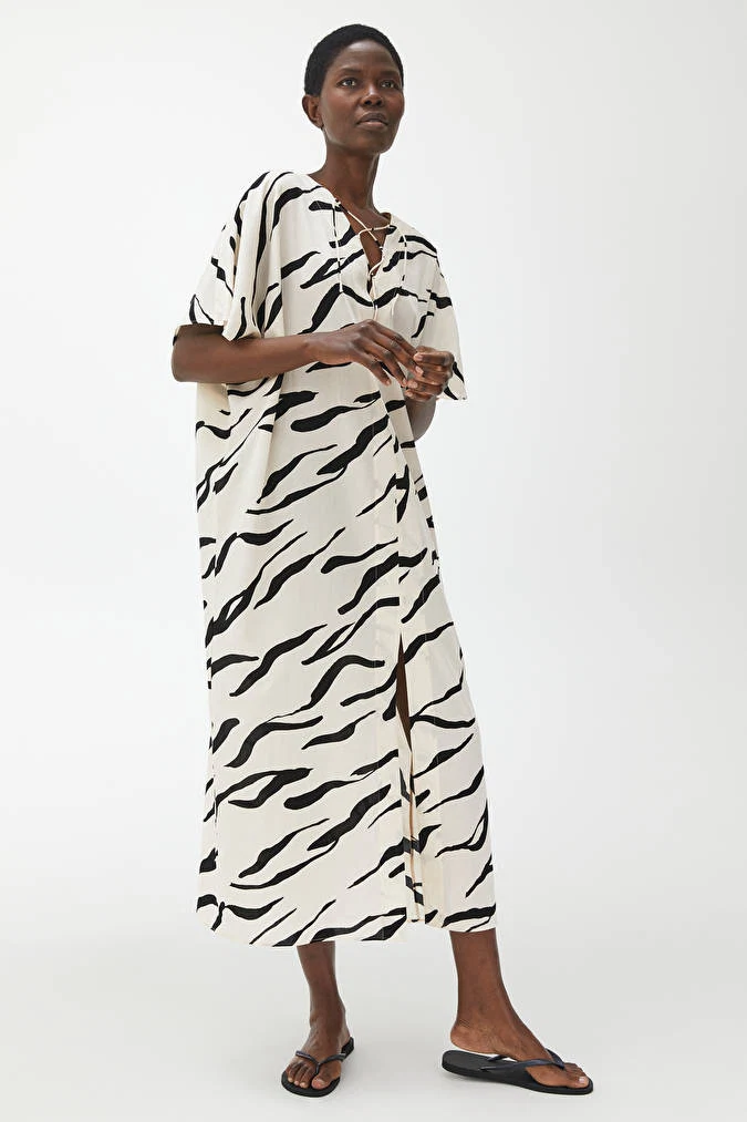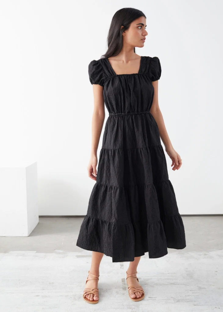 The best type of fashion right now is easy. Simple styles with room for breathing space, both literally and figuratively. Thankfully, the online high street is aflush with dresses like this. Tiered skirts with puff sleeves. Flowing bodices that make you feel like you are far away, walking by the water with the sun splashing on your face. Fluid designs that help us move through these turbulent times.