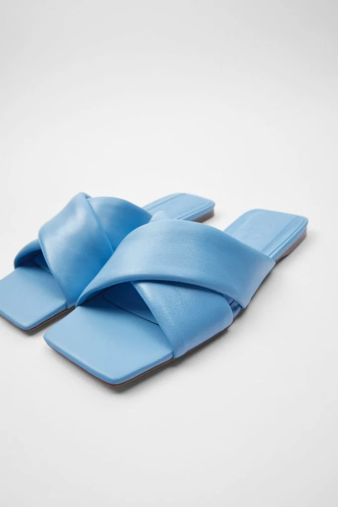 This season there is a wondrous mix of styles available to suit all styles. Flat sandals are the shoe du jour and are equally chic as they are comfortable. Zara’s padded baby blue versions will look divine under jeans or white maxi skirts. If you are looking for something a little different, the pink and purple models by Arizona Love provide 1990s nostalgia with intertwined bandanas in place of straps.