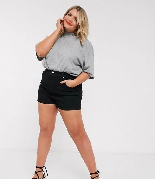 ASOS Design curve denim A-line mom short in black, €34.56 at ASOS