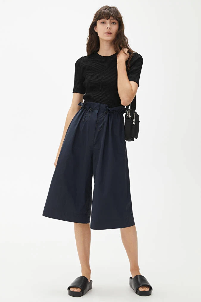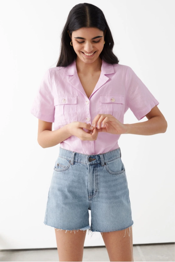 This type of shorts are flattering on all shapes and sizes. A structured short will streamline curvier figures and add shape and definition to those with a straight shape. Because of the structured look, you can add volume on top. Wear yours with an on-trend puff sleeve shirt or add an oversized blazer.