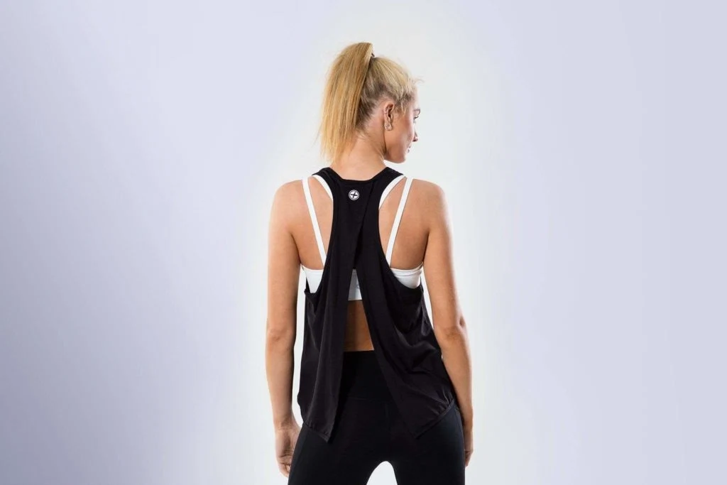 As there’s minimal sweating involved (unless you’ve a penchant for hot yoga) usually a tank in organic cotton or any kind of natural fabric will suffice. Generally speaking, a lot of people like something that’s airy and breathable, so look for details like low-cut sides or a scooped back.