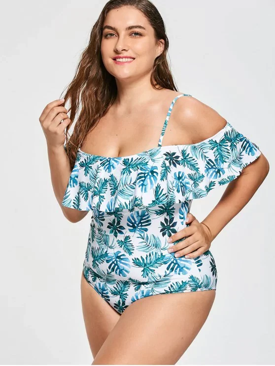 Plus size ruffle leaf print one-piece swimsuit, €15.25 at zaful.com
