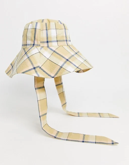 ASOS DESIGN fisherman hat with under tie in multi check, €19.36 from ASOS