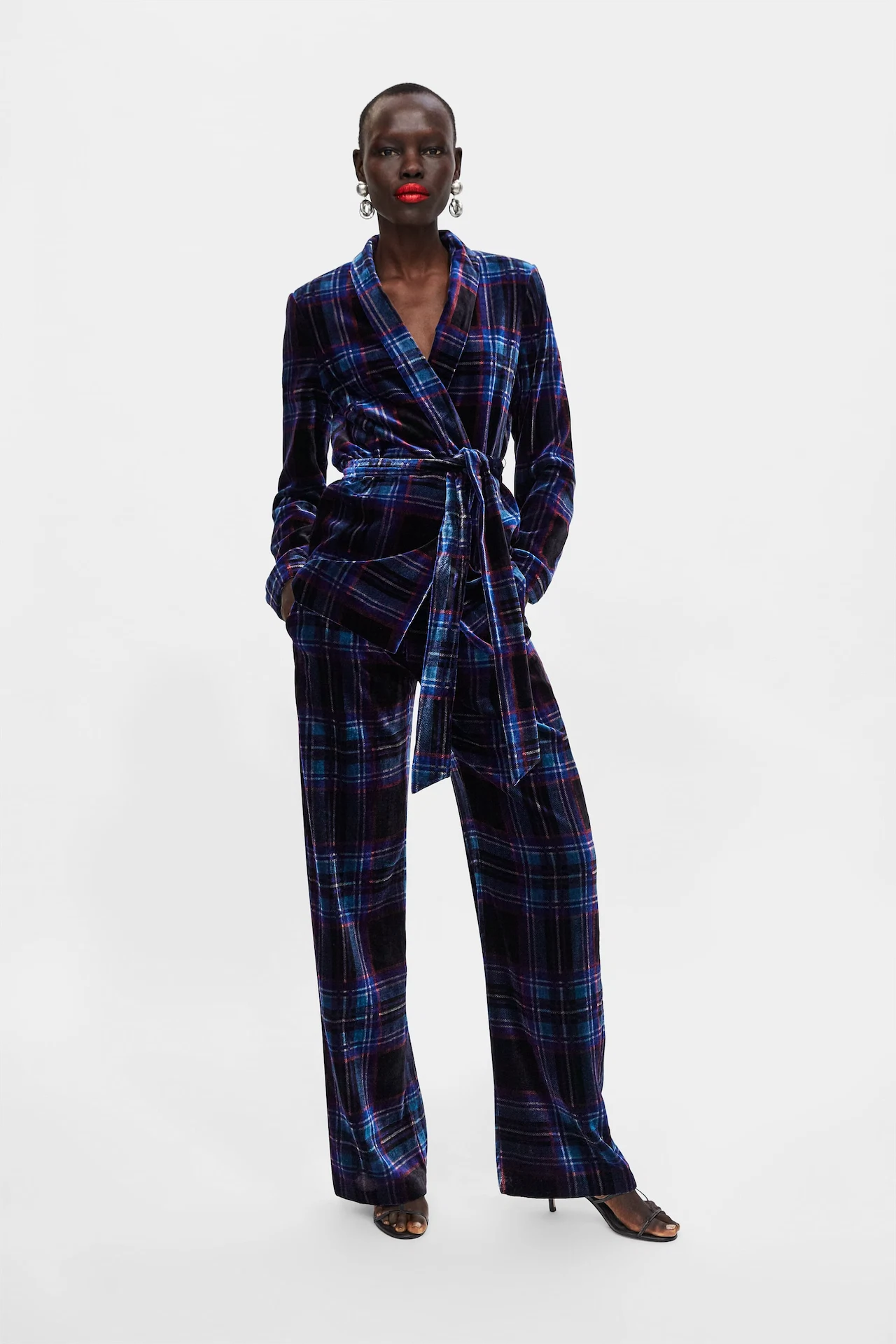 Checked velvet blazer, was €89.95, now €49.99; check velvet trousers, was €59.95, now €29.99 at Zara