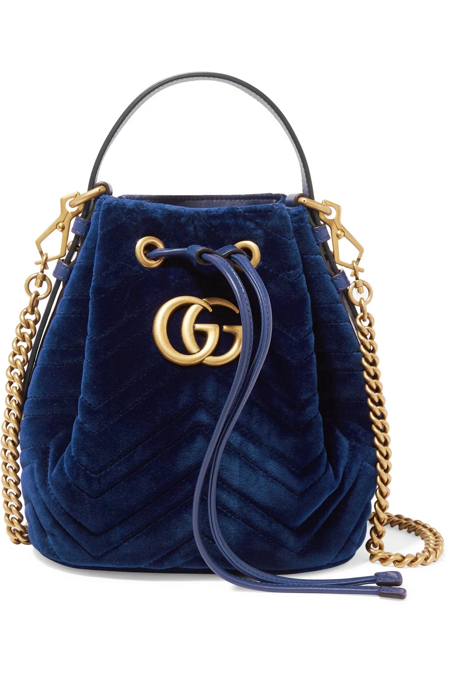 GG Marmont leather-trimmed quilted velvet bucket bag, Gucci €1,790 at net-a-porter.com