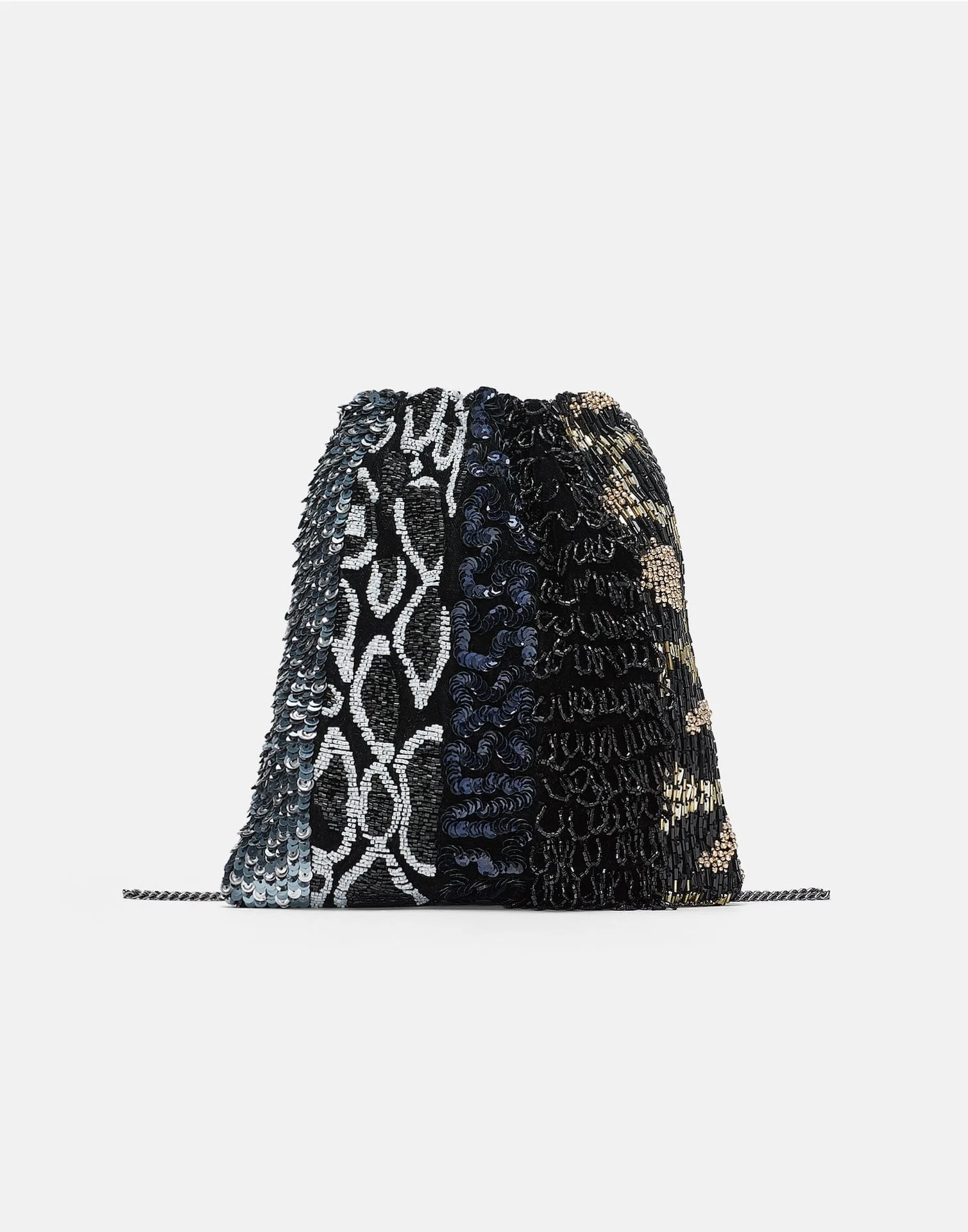 Evening patchwork pouch bag, €39.95 at Zara