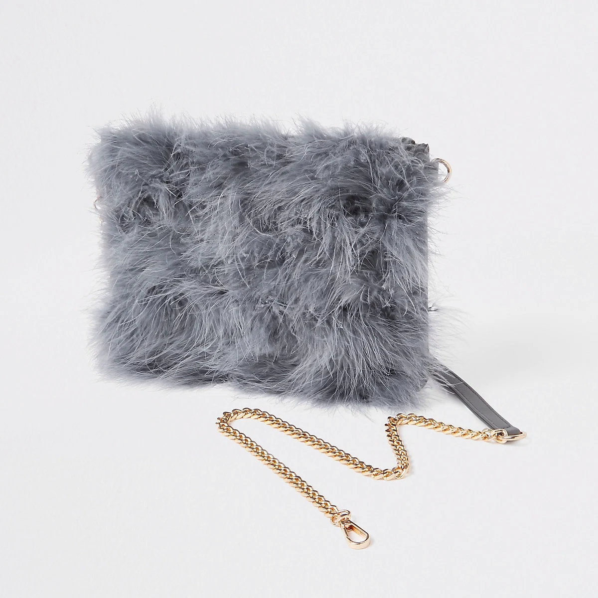 Grey marabou faux fur cross body pouch bag, was €30.00, now €22.00 at River Island