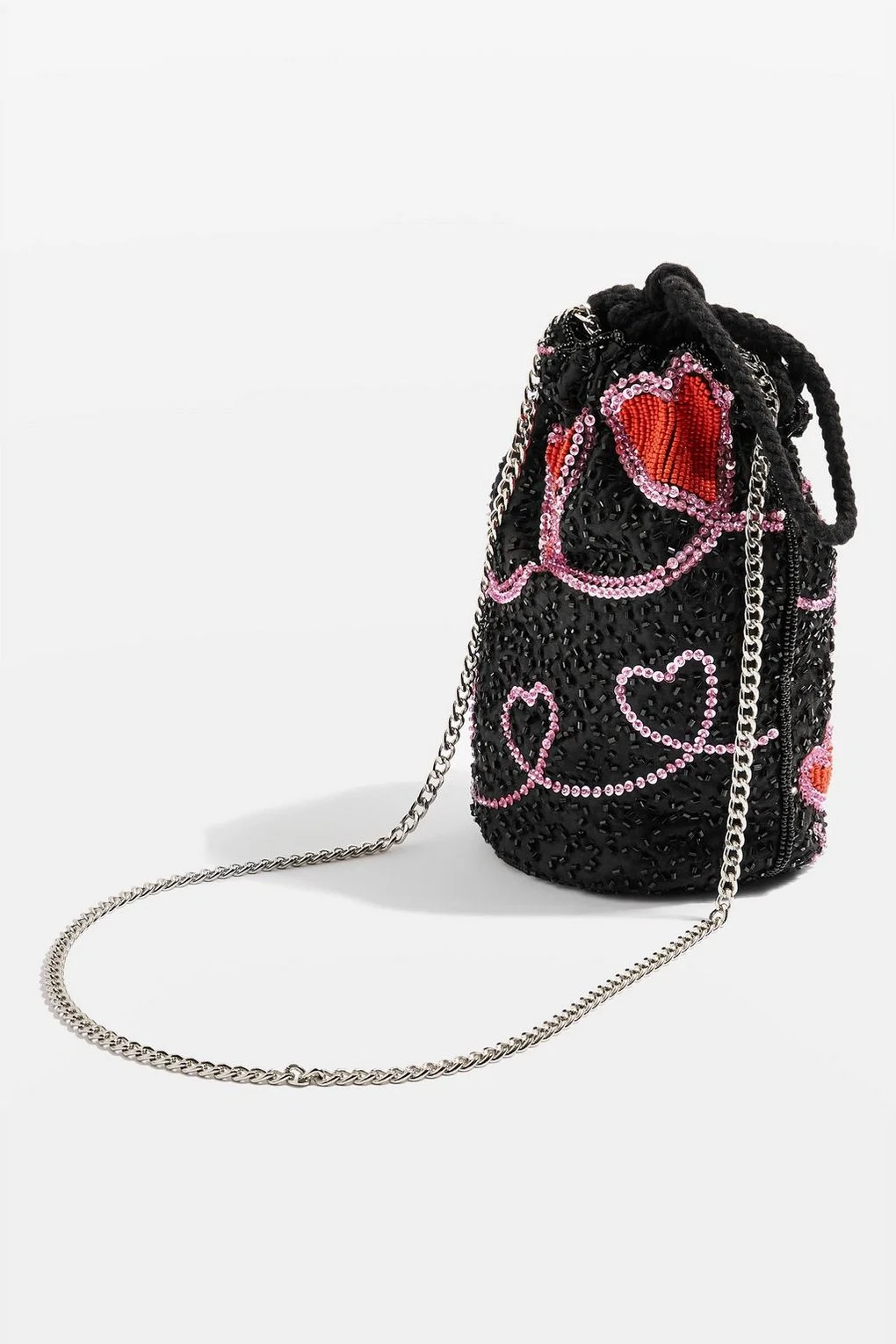 Heart beaded drawstring cross body bag, was €42, now €20 at Topshop