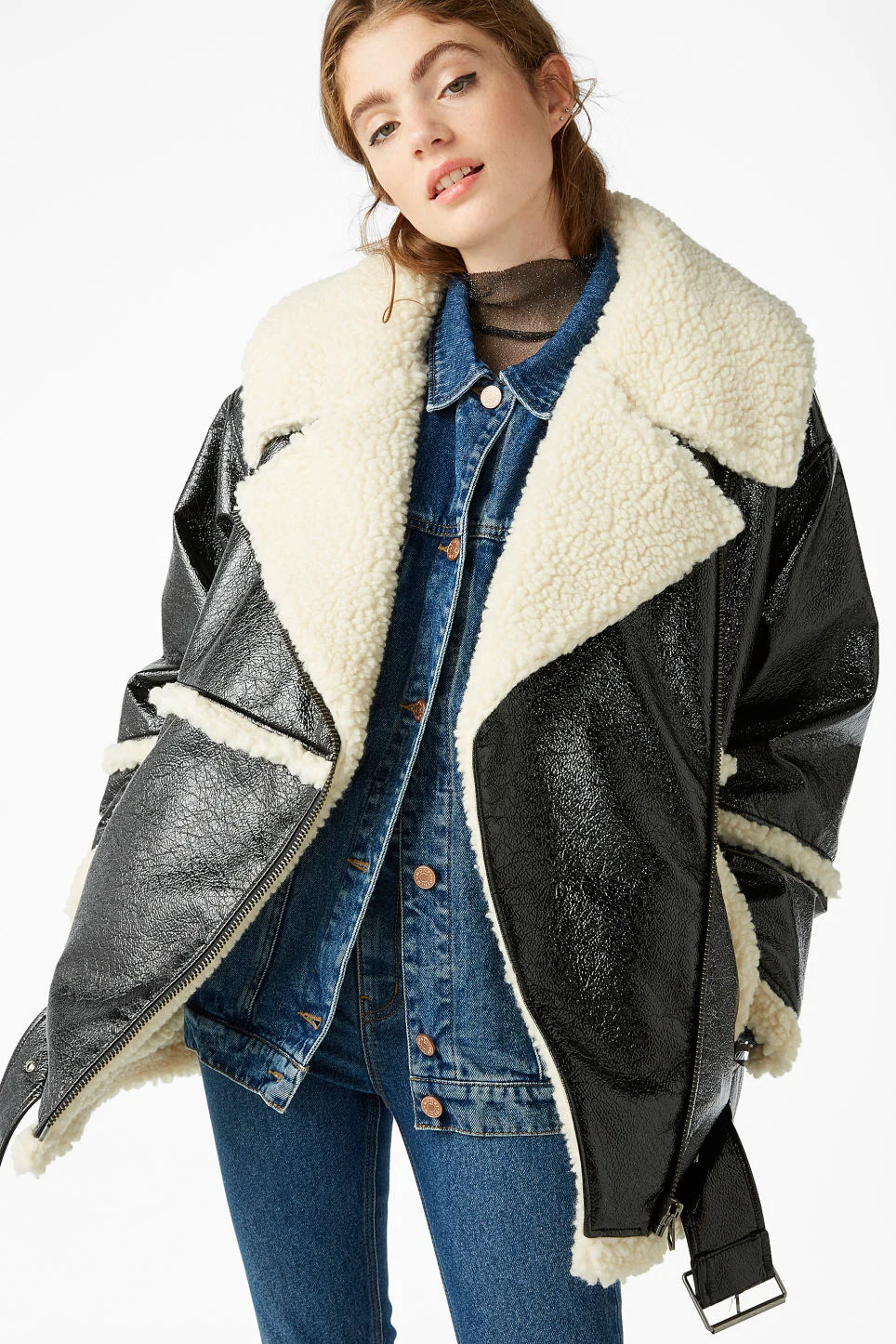 Monki premium shearling aviator jacket, €52.54 (reduced) at asos.com