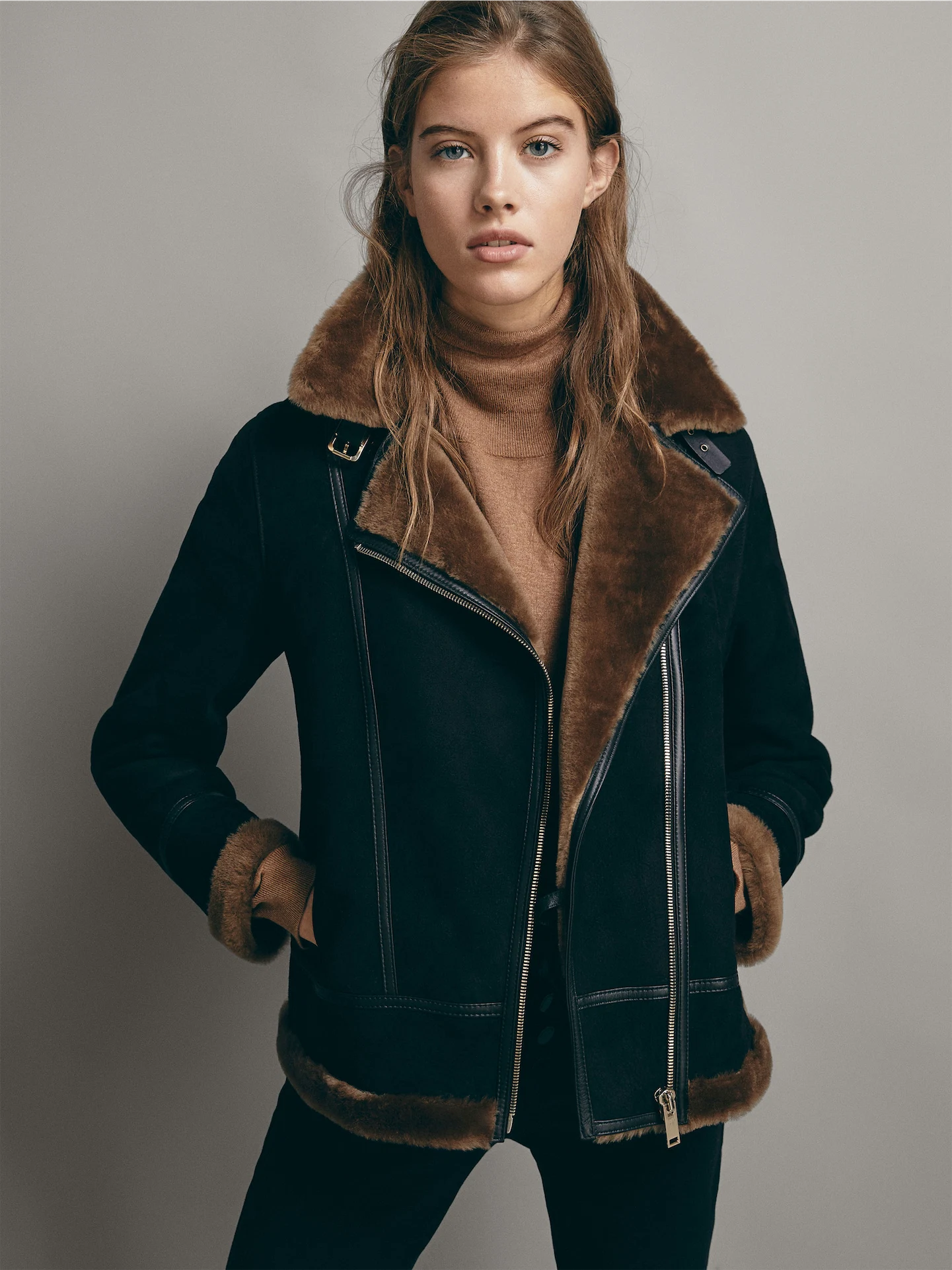 Double-sided leather biker jacket, €749 at Massimo Dutti