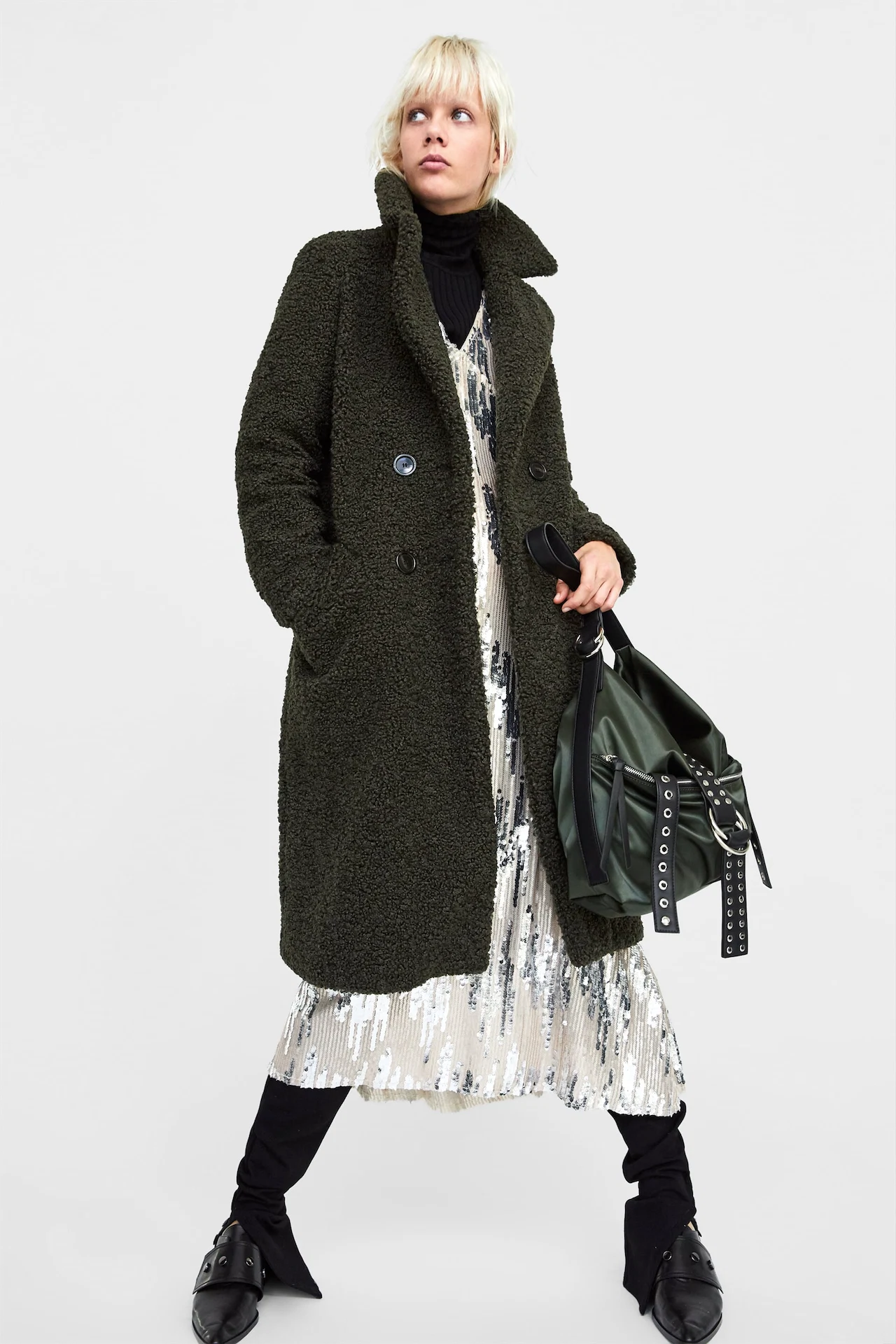 Faux shearling coat, €89.95 at Zara