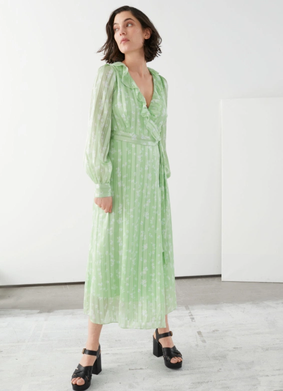 Ruffled Jacquard Midi Wrap Dress, was €99, now €54