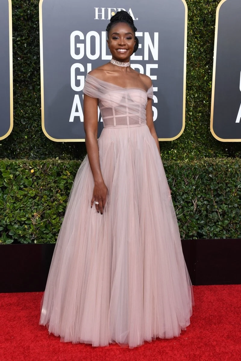 I had to do a double-take to breathe in the frothy lusciousness of Kiki Layne’s ashy pink custom Dior ballet dress. The red carpet breakout star coiled her hair into a neat and elegant dancer’s bun, perfectly complementing the pink tulle wrapped bodice and full-skirt. So soft and elegant.
