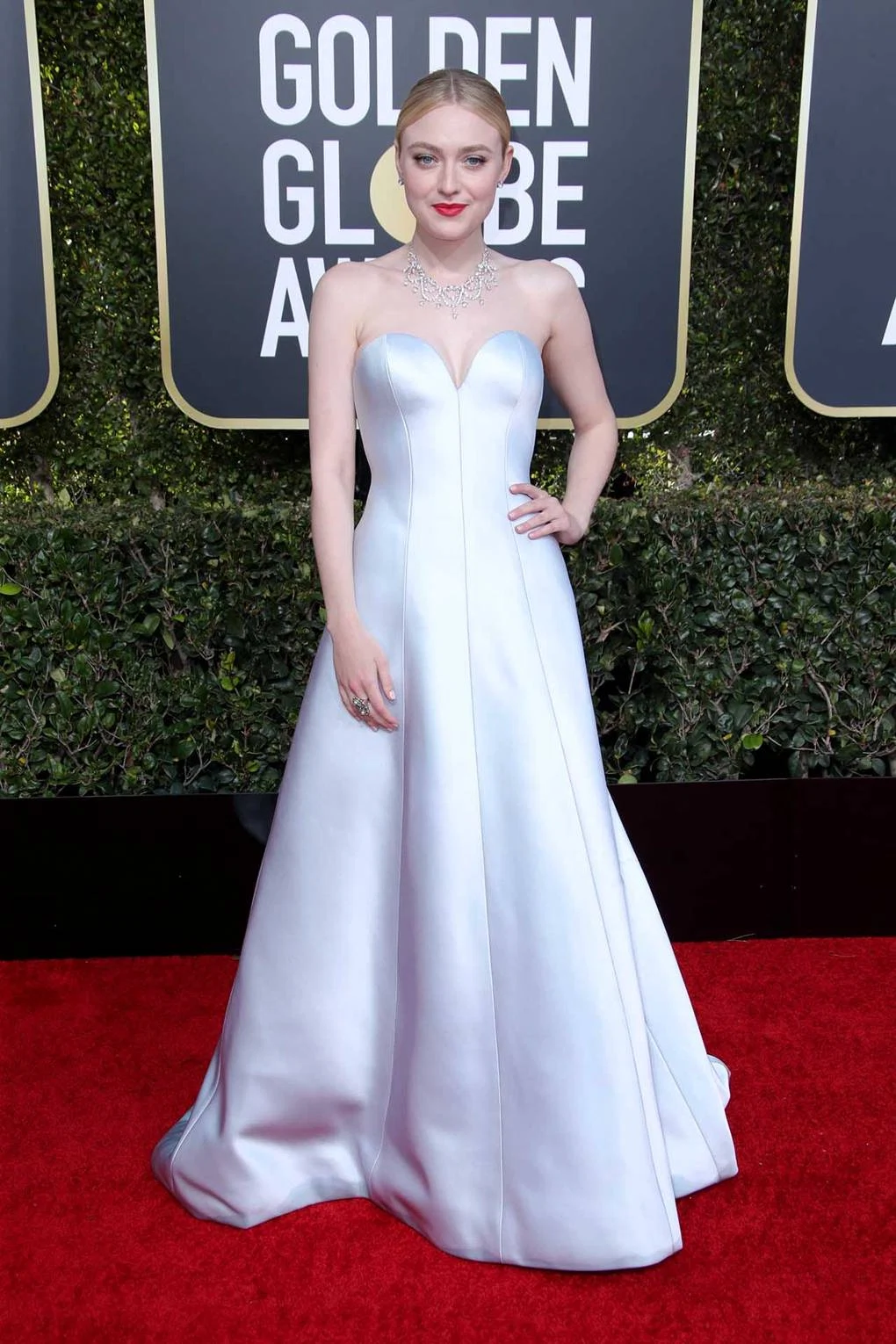 White for the red carpet is a brave choice as it can so easily look bridal, but Dakota Fanning nailed this. I was surprised by how much I liked this look. Something so simple and plain would usually bore me, but Dakota in this bespoke Armani Privé, paired beautifully with her milky skin tone, looked like the most perfect ice queen.