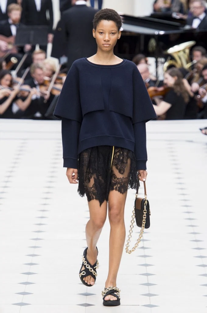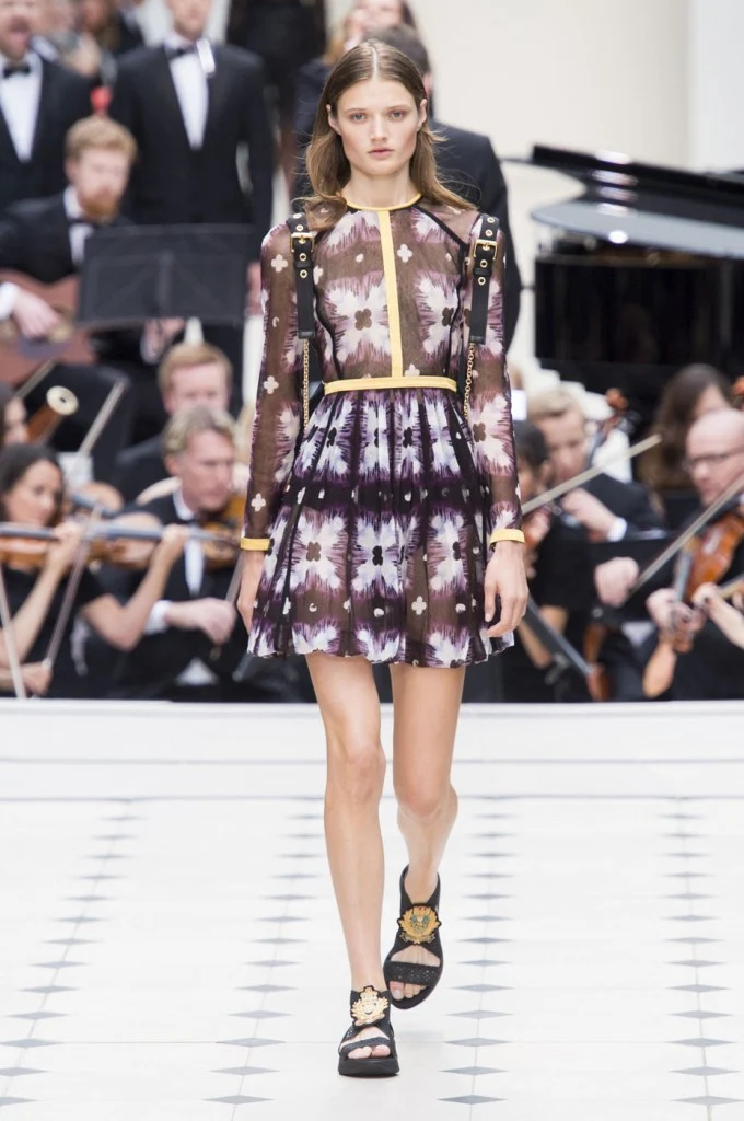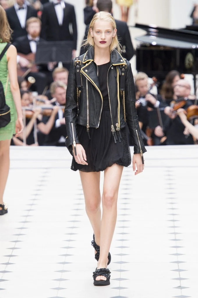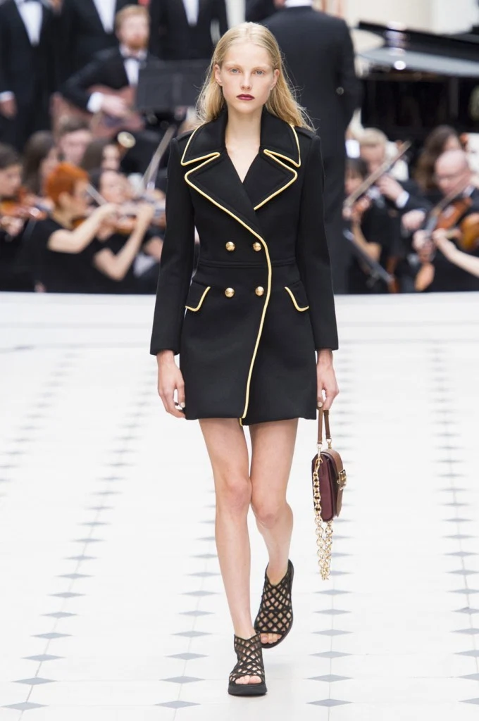 The show itself didn’t have a very “spring” feel to it and Burberry CEO and Creative Director Christopher Bailey said this was a specific choice considering only half the world in entering spring and prefers to display an fresh attitude rather than keeping with the traditional seasonal palette. Instead, we saw gold embroidered pea coats, flowing?pants, flat sandals and grungy backpacks. Burberry are continued their streak of staying?a little outside the box and we’re loving it.