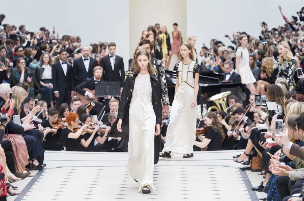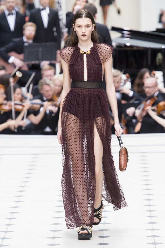 Burberry always have a habit of going a bit over the top – from the return of layers of antique Nottingham lace at the S/S 2014 show to last season’s folksy prints – Burberry has?never been shy and their shows?ALWAYS draw the biggest celebrity crowd at London Fashion Week