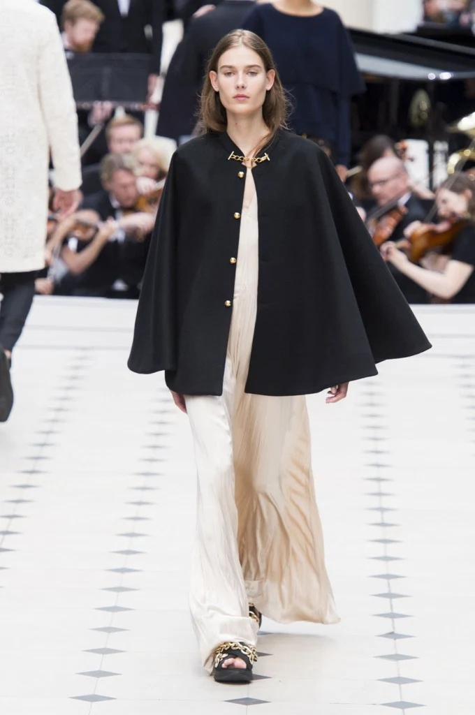 However this season Burberry went all Chanel on us with their staging and set. Held in a pristine white marquee in Hyde Park, a 32-piece orchestra that filled the central pit swelled over the crowd as Alison Moyet sang to open the show.