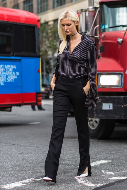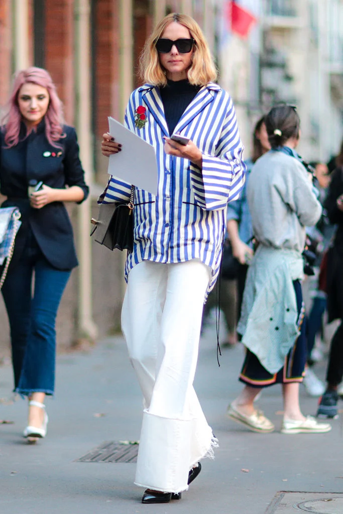 The classic white shirt just got an upgrade. According to the street, it’s all about statement stripes in pink, red and electric blue. And, what’s the coolest way to wear this piece? Keep things casual: consider leaving buttons undone and choose a slightly larger size for a relaxed silhouette that looks effortlessly chic. We can’t wait to wear ours layered under dresses, worn over knits or tied at the waist.