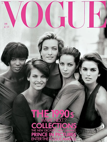 That iconic video for George Michael’s Freedom €90, shot by David Fincher, showcased all the supermodels that featured on the Vogue cover became an instant cult classic. The models were seen in a way, they had not been previously as they lip-synched to the song. They caught the public’s fascination, as well as the designers and it is not an over-statement to say they ruled fashion’s new mood that championed strong women.