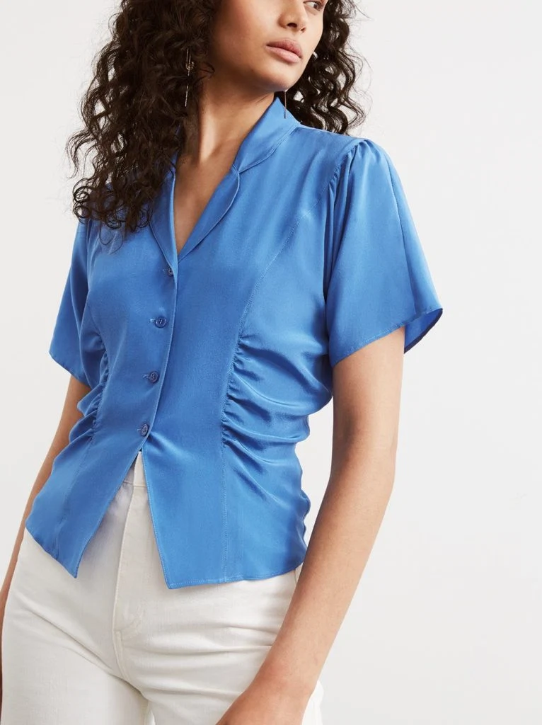 Valeria blue sick ruched blouse, €45 (was €115) at kitristudio.eu
