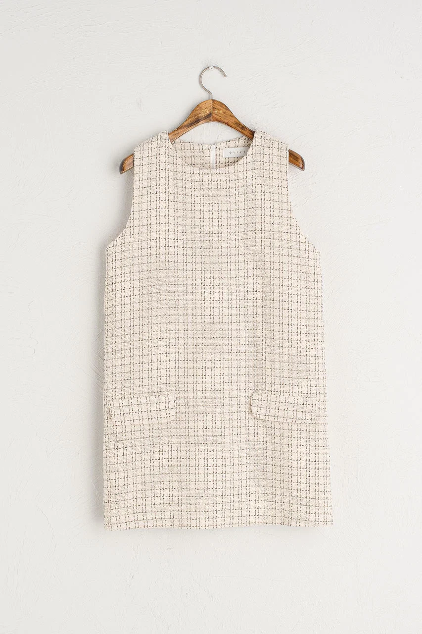 Tweed dress in ivory, €79 at oliveclothing.com