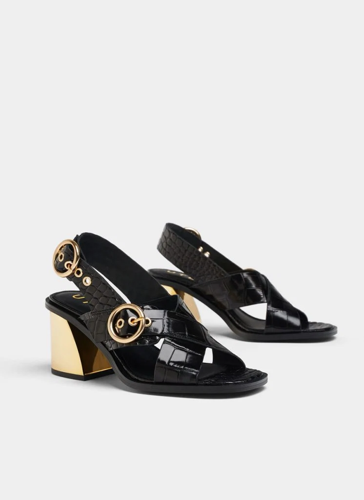 Mock croc sandals with buckles, €135 at Uterque.com