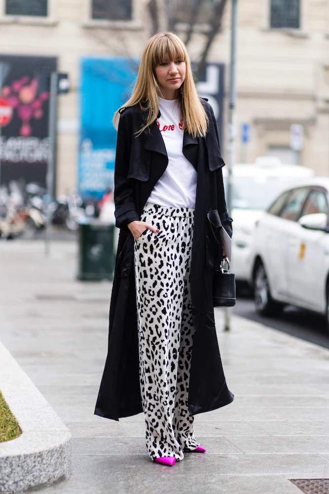 A quick google of ‘street style 2017’ and your screen will be filled with spotted-trousers in every colour.?These trousers pack a punch, so keep the rest of your outfit minimal for the perfect, chic approach to the leopard print.