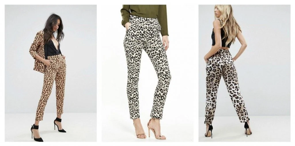 Missguided Leopard Print Cigarette Trouser, ?40.54 at Asos,?V by Very?Jacquard Animal Trouser, €19 at littlewoodsireland.ie, tailored Mix & Match Highwaist Cigarette Trousers In Animal Print, €47.30 at Asos.