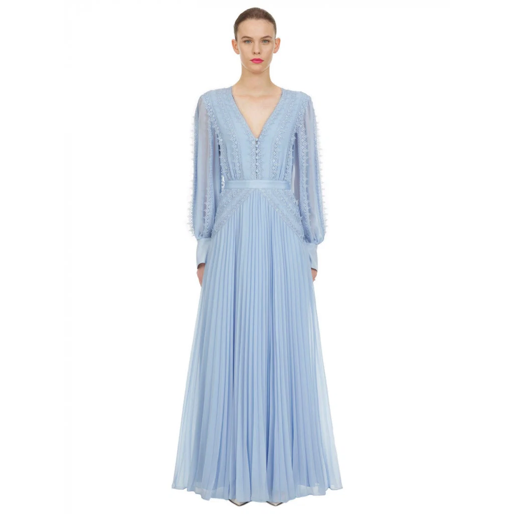 Blue Chiffon Lace Trim Maxi Dress, €418 from Self Portrait