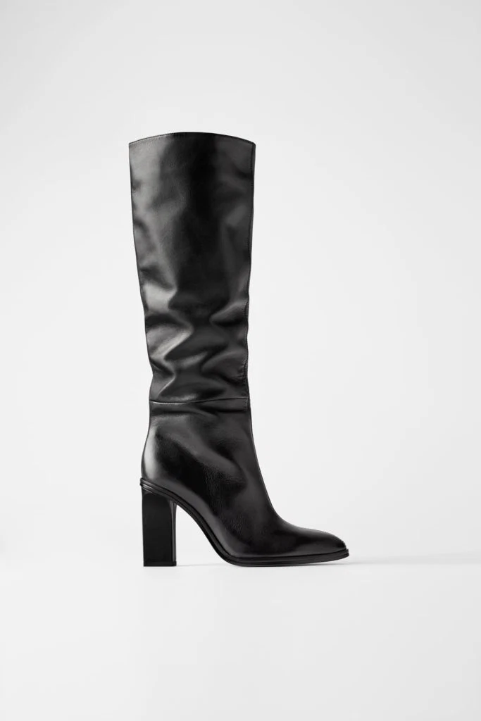 Slouchy high-heel leather boots, €119 at Zara